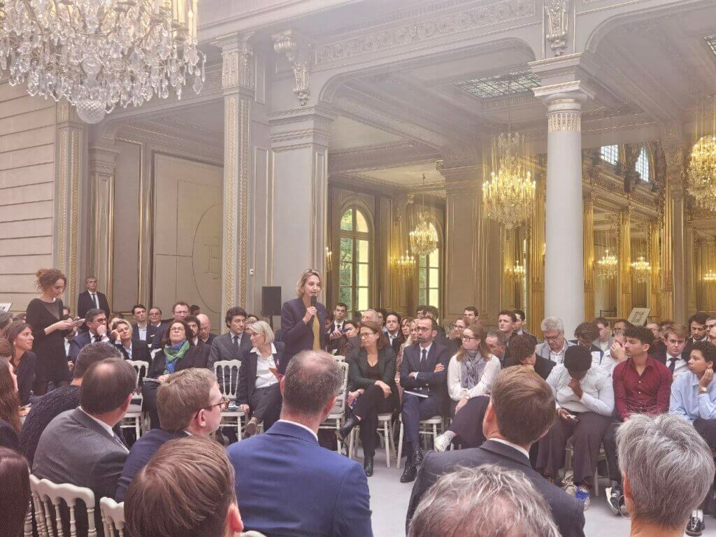Présente à l’Élysée avec le président de la République Emmanuel Macron et des chercheurs, des élus et des parties prenantes, pour une réunion sur la démocratie à l’ère des réseaux sociaux.