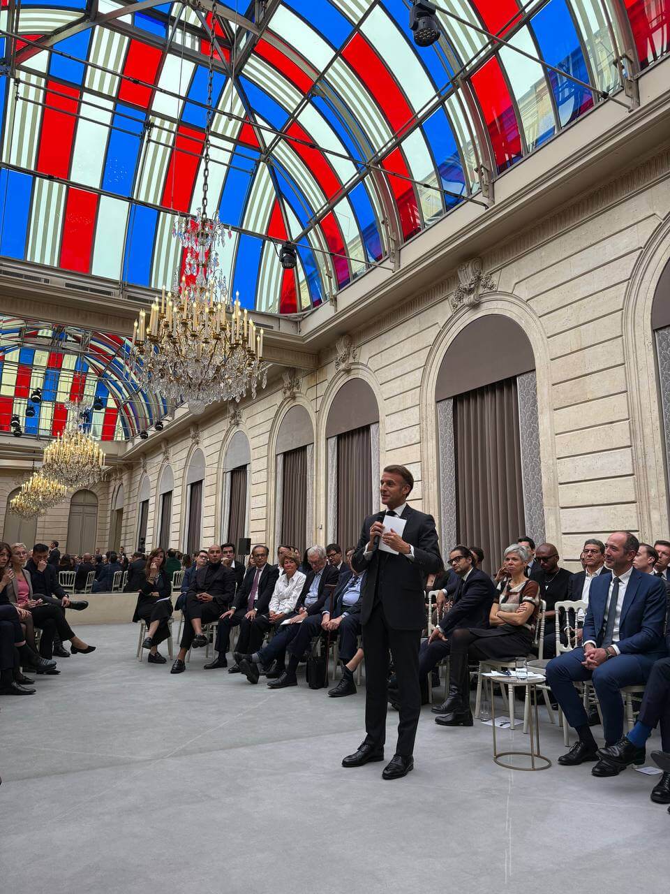 Présente à l’Élysée avec le président de la République Emmanuel Macron et des chercheurs, des élus et des parties prenantes, pour une réunion sur la démocratie à l’ère des réseaux sociaux.